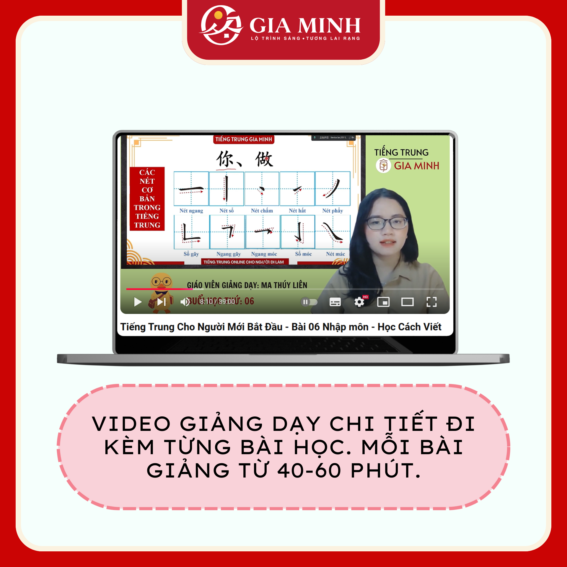 + Cách viết cách nét chữ Hán, cách viết bút thuận, đúng quy tắc; Mẹo ghi nhớ hán tự thông qua 53 bộ thủ thường gặp cấu tạo nên chữ Hán.