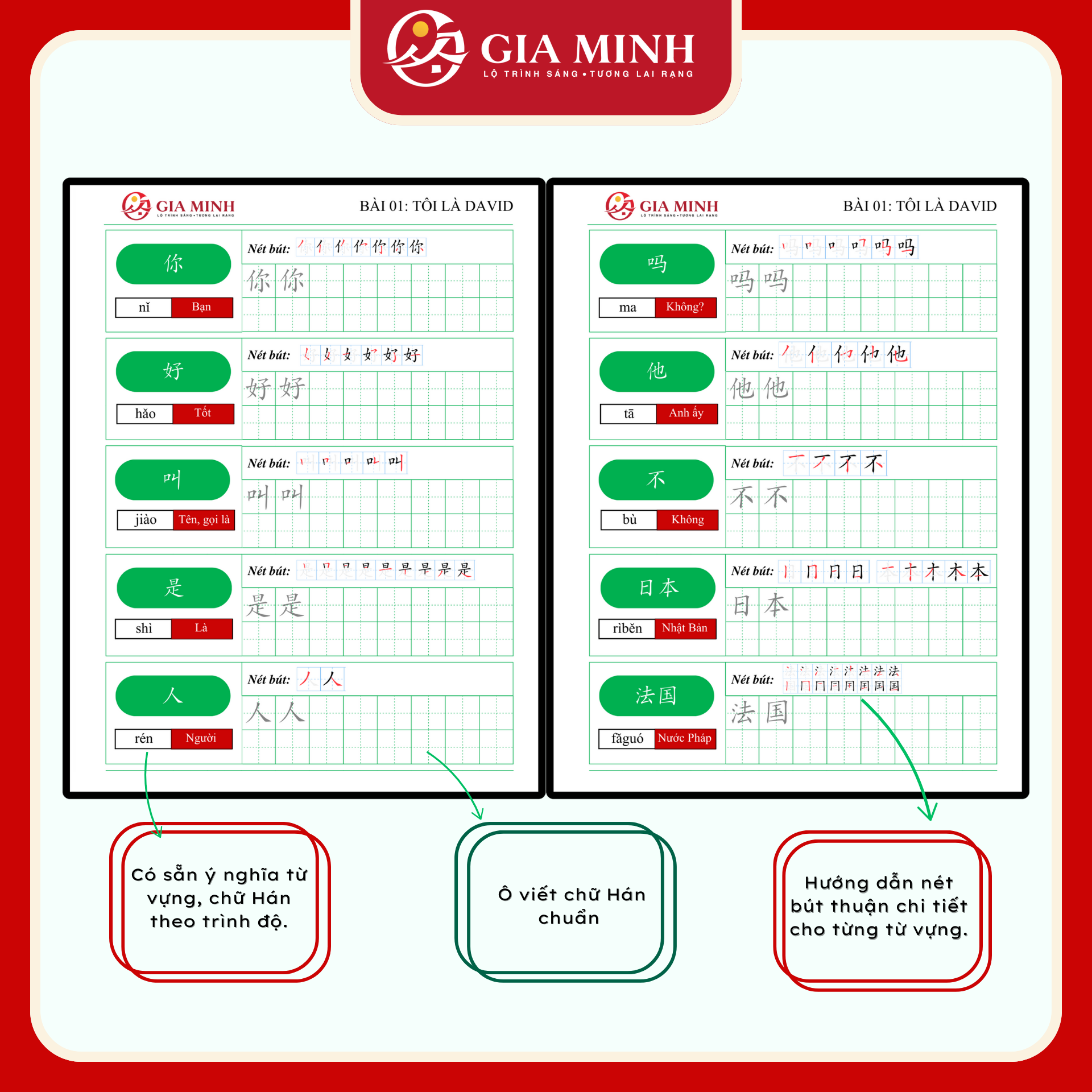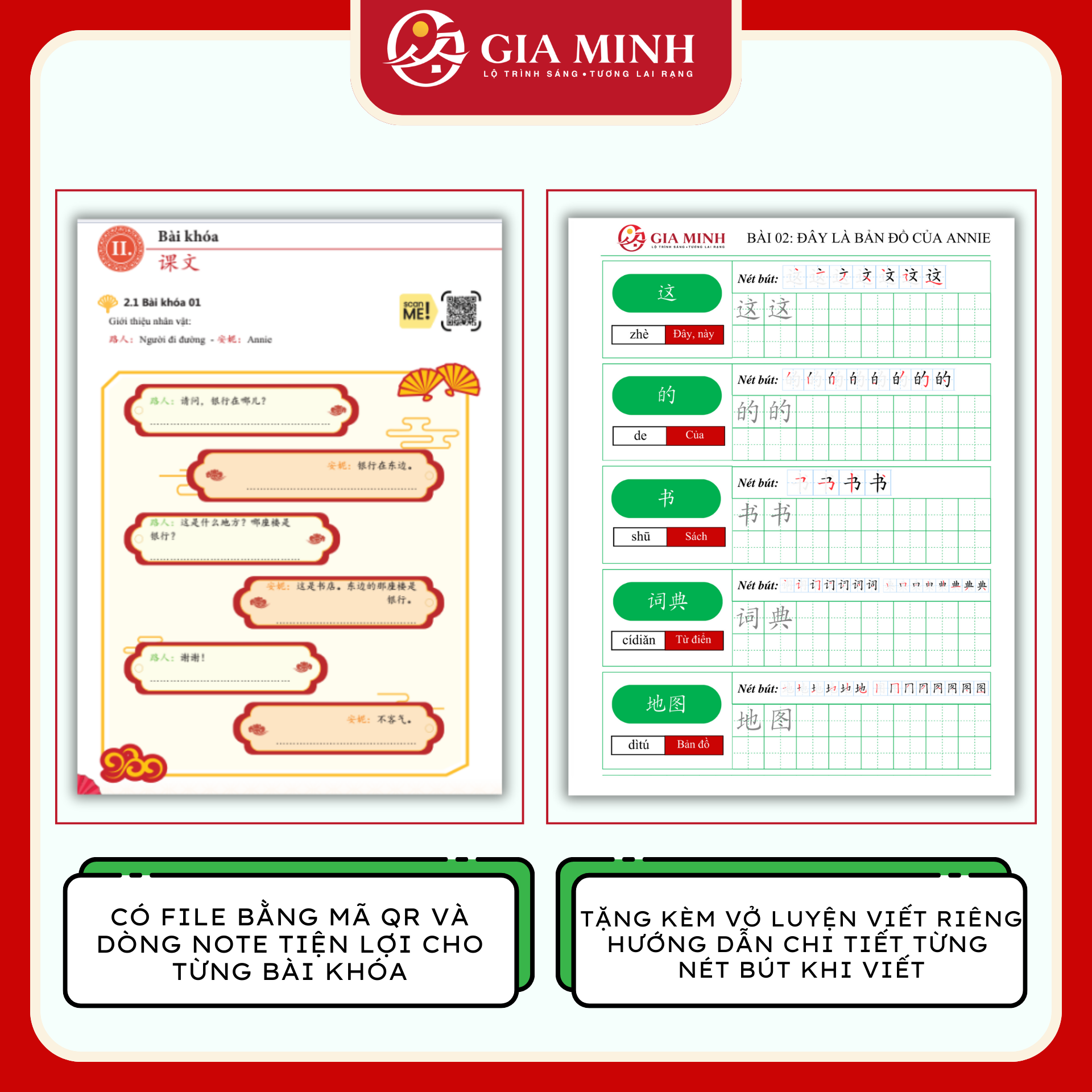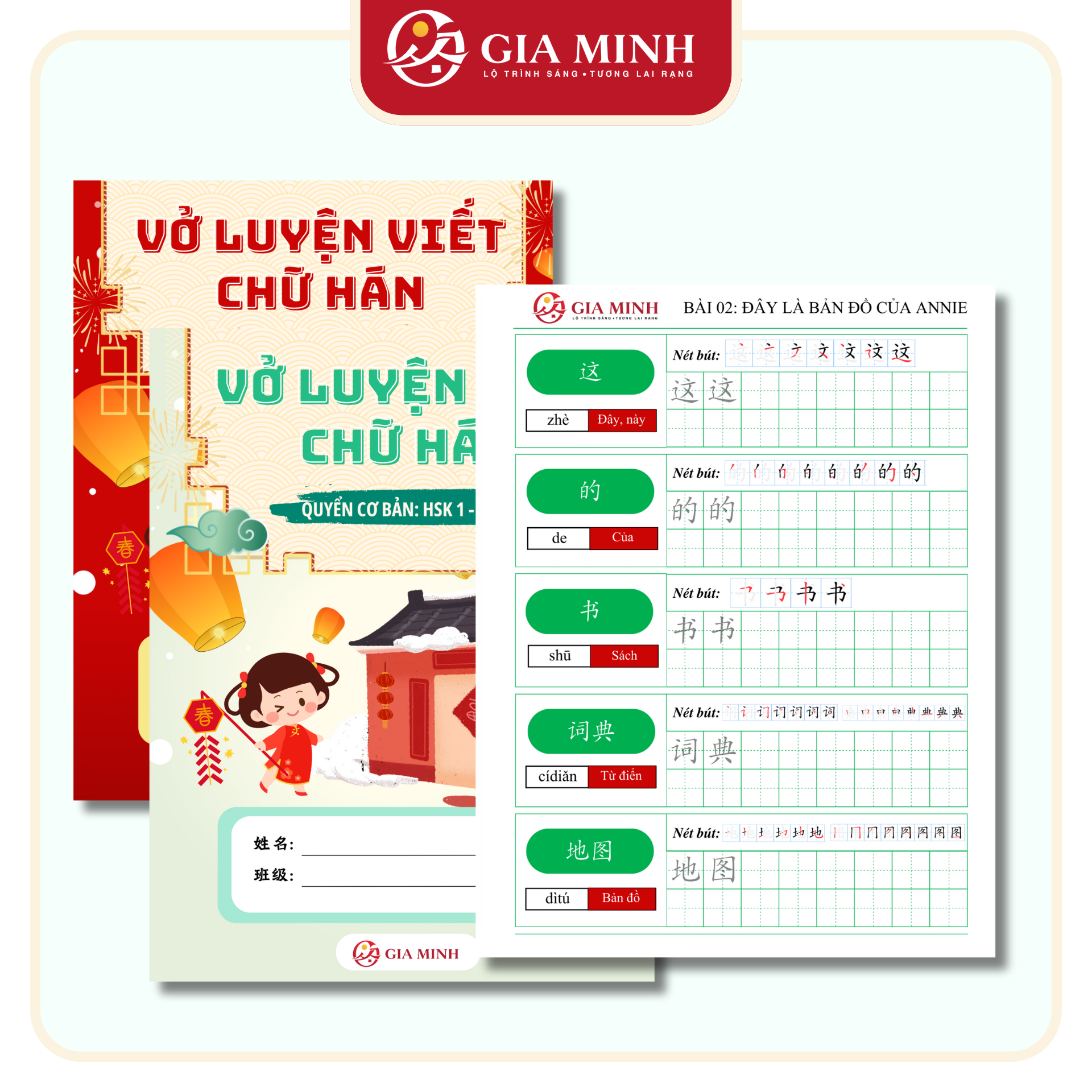Thiết kế kết hợp giữa sổ tay ghi chép + sách bài tập + kiến thức trong giáo trình 成功之路 - Đường Đến Thành Công do trường đại học ngôn ngữ Bắc Kinh biên soạn và tài liệu trong khóa học chuyên sâu của Gia Minh.
