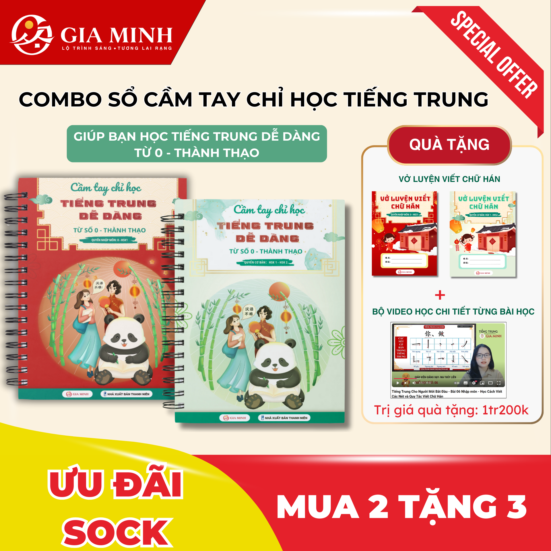 Combo Video Bài Giảng + Sổ Cầm Tay Chỉ Học Tiếng Trung Dễ Dàng Từ 0 - Thành Thạo Cho Người Tự Học Tiếng Trung