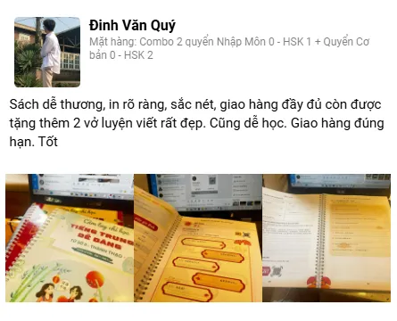 Đang học thấy oke lắm, có video học kèm nên bắt trước theo rất dễ, sách vừa học mình vừa ghi chép được dễ dàng xem lại để ôn bài. Học tiếng trung kiểu này thấy dễ hơn hẳn nha
